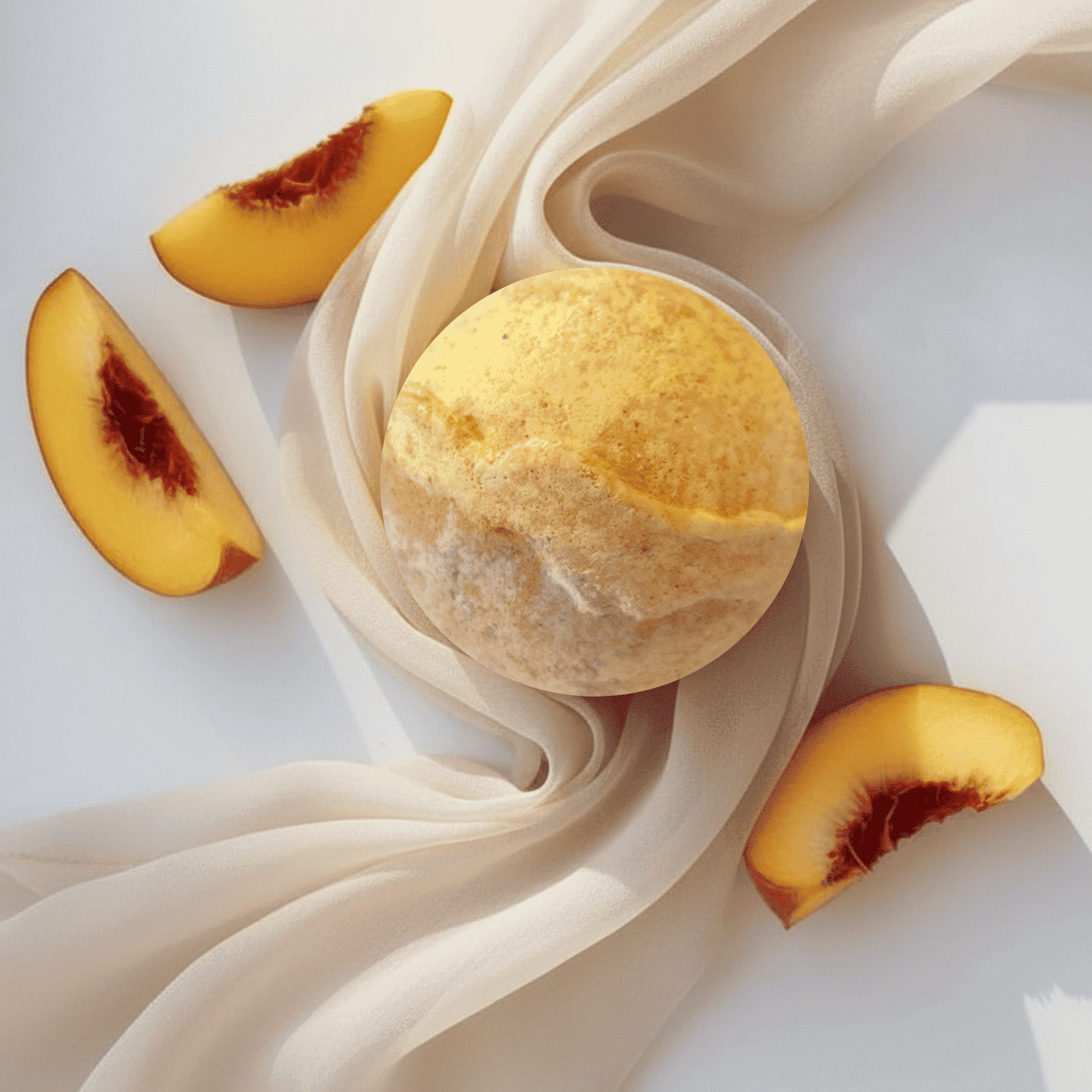 Luxuriöses Badeerlebnis mit saftiger Pfirsich Badekugel.