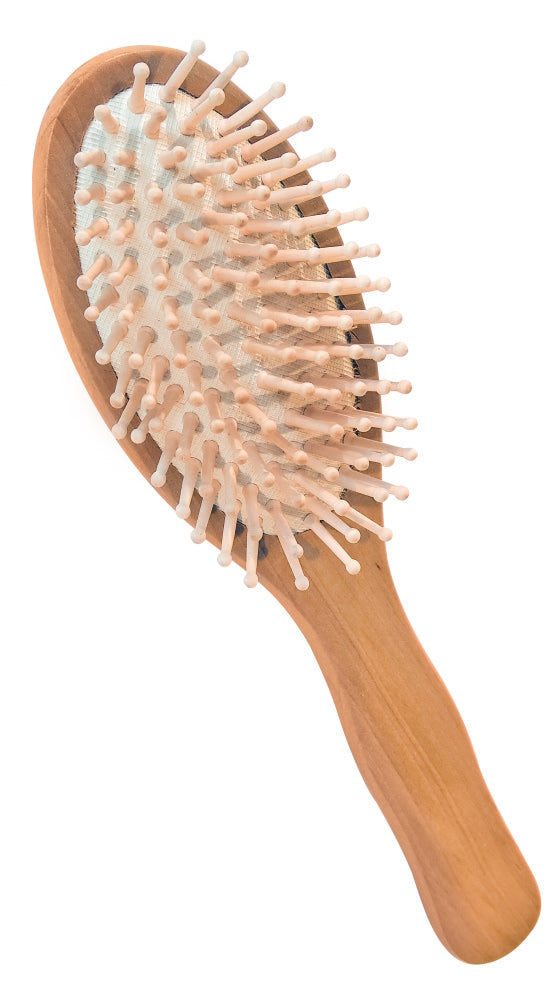 - Schonendes Kämmen mit Naturborsten oder Holznoppen – sanft zur Haarstruktur und Kopfhaut